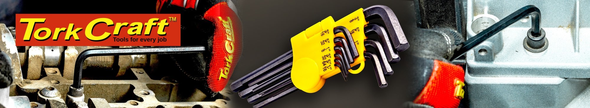 The other great Tork Craft L-wrench news will certainly please American and British car fans and those who still work with old school machinery and equipment. The Tork Craft imperial hex set comprises ten keys to perfectly fit Imperial allen screws. So no more rounding out Imperial hex screw drives by using metric wrenches!